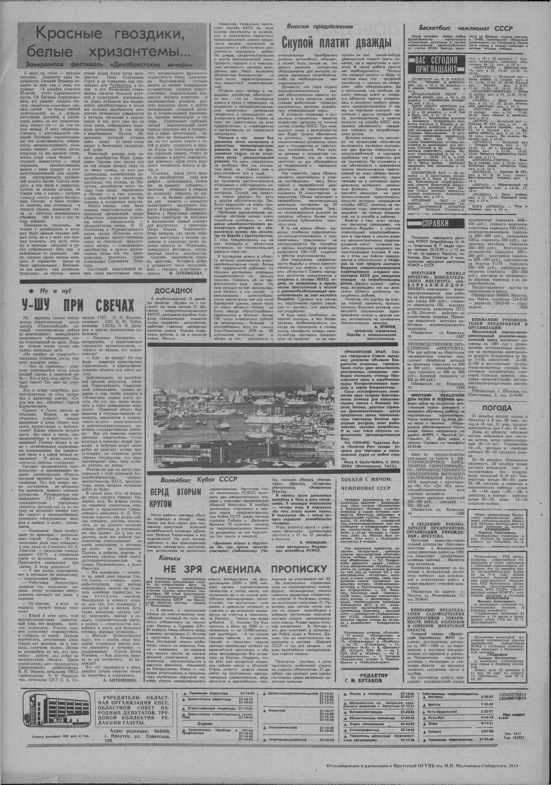 - В 1990-м фестиваль «Декабристские вечера» завершился под символичным заголовком «Красные гвоздики, белые хризантемы».