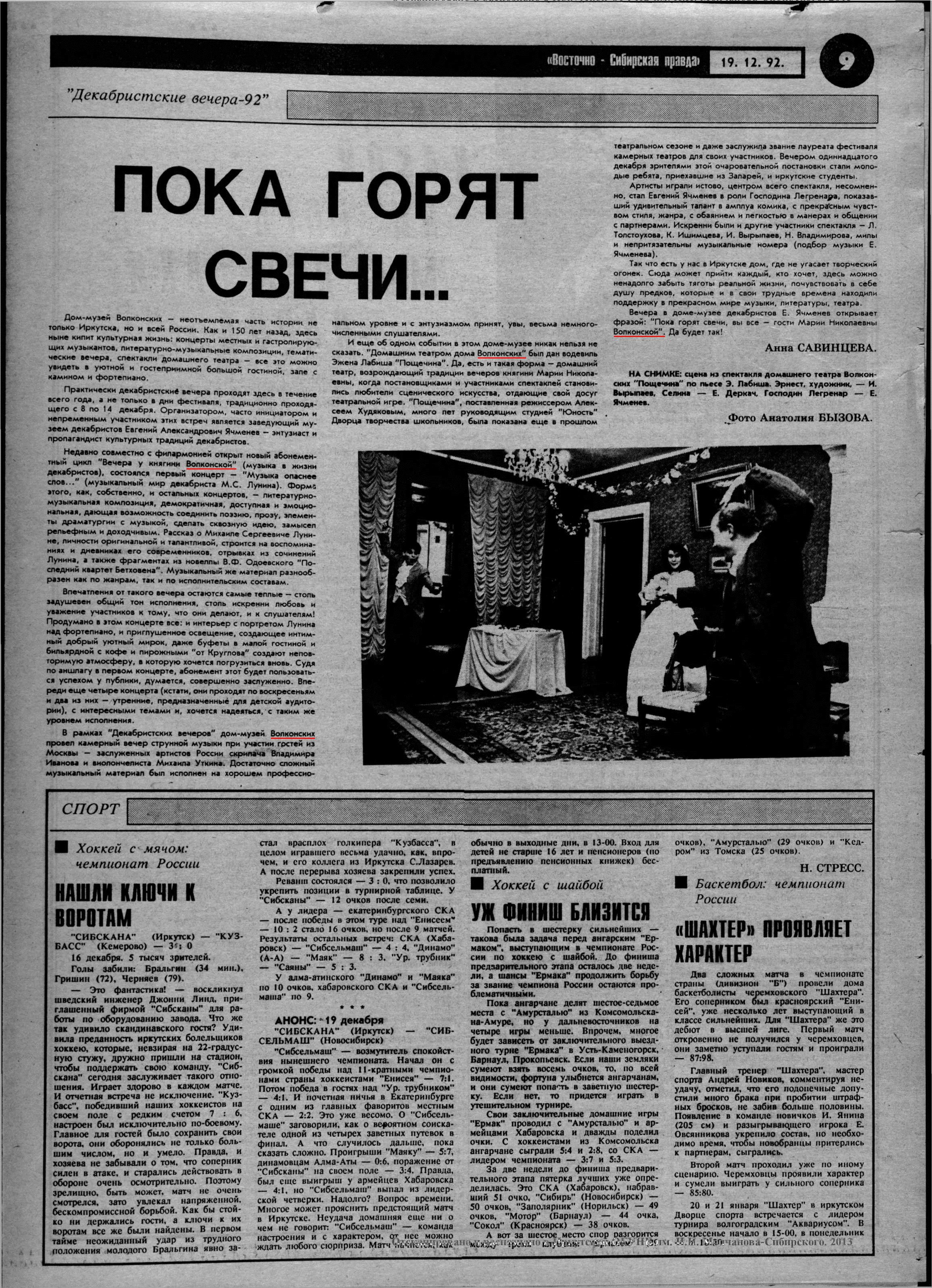 - В 1992-м статья «Пока горят свечи» перенесла читателей в эпоху домашнего театра в доме Волконских.