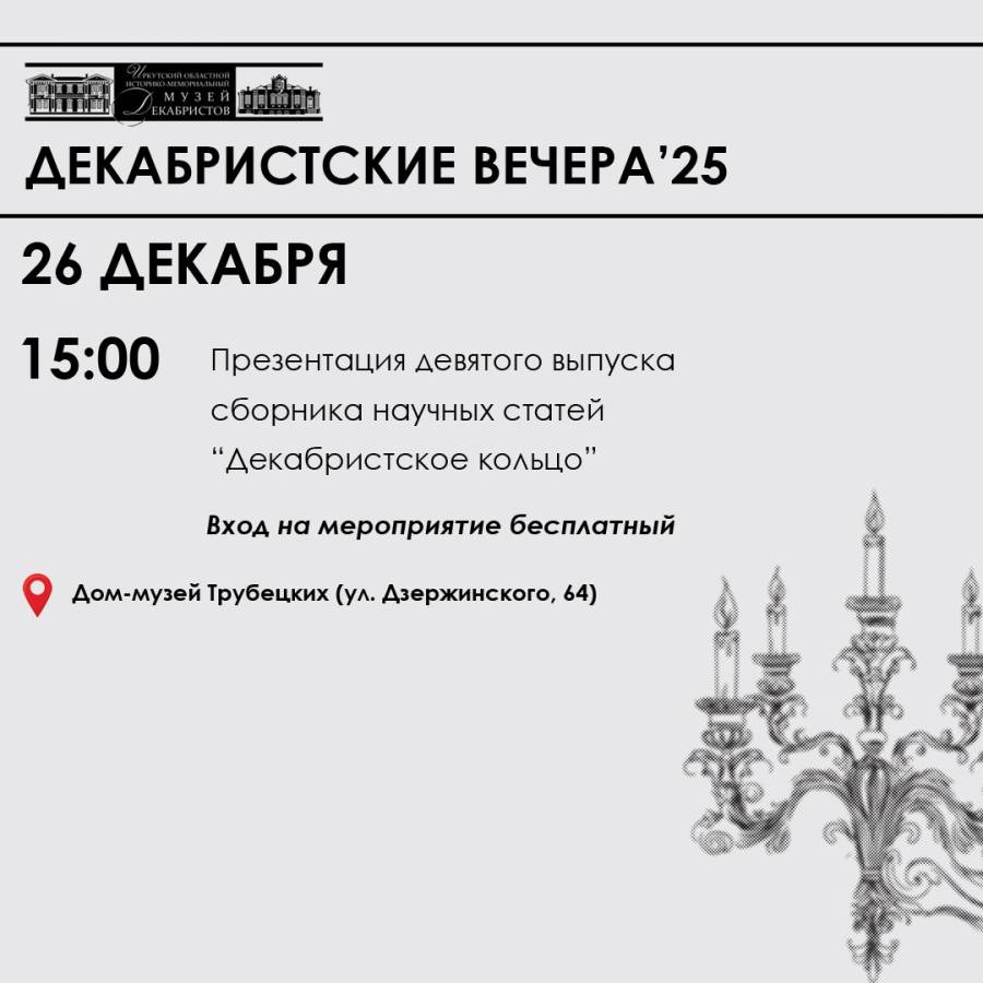 ‼️ Приглашаем всех в Дом-музей Трубецких 26 декабря (пятница) в 15:00 на презентацию нашего научного сборника "Декабристское кольцо".