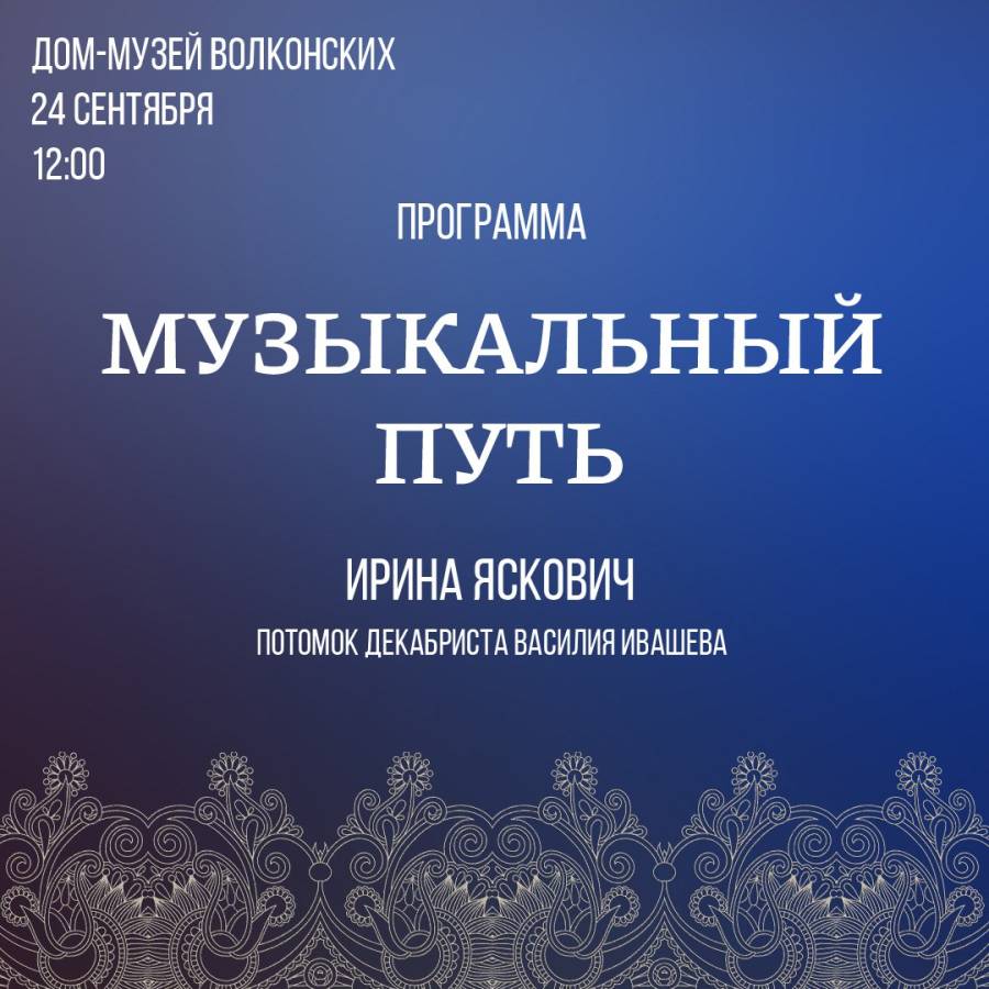 ✨ В программе выступит Ирина Яскович, потомок декабристов в шестом поколении.
