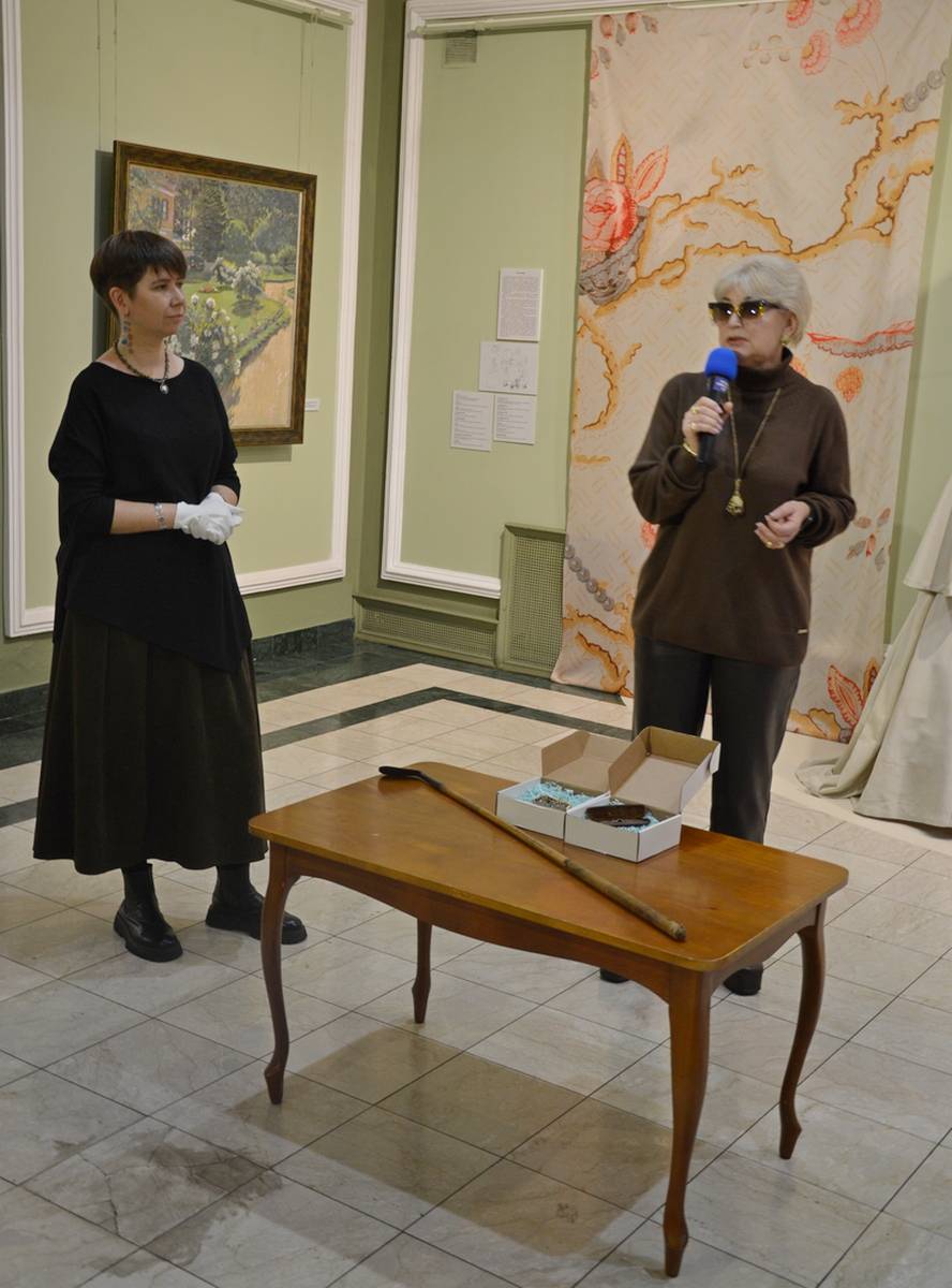 Этот дар, как и два других ценных подарка, был представлен публике в рамках выставки «Портрет-а-порте», которая до 26 октября проходит в Иркутском областном художественном музее. Обычно Иркутский музей декабристов рассказывает о дарах в конце года как об итоговом событии, либо когда подарки особенно многочисленны или ценны. Однако впервые презентация даров прошла за пределами музейных стен – на выставке, вдохновившей дарителей.